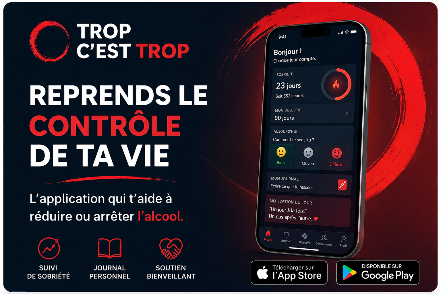En complément de l’association, l’application TROP C’EST TROP permet d’avoir une aide concrète, directement dans la poche.